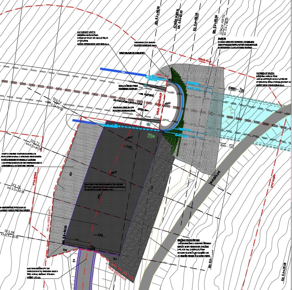 Tunnel Valeta is a part of future connection road between Piran and Portoroz with main design in progress. It is single tube two lane tunnel, 893 m in length with service tunnel 683 m long. It is located in flysch formations of the Slovene seaside region. On its east side a 120 m long precut was designed. Partially to enable a construction of soil stabilization to assure a minimal overburden of 3.0 m and partially to construct permanent retaining walls. The temporary stabilization consisted of shotcreting and rock bolting while final stabilization structure was designed as stone/concrete gravity wall. The maximum height of a designed slope is 25 m. On the west side a combination of high tensile strength steel mesh and reinforced earth was designed. The maximum height of reinforced earth is 10 m.